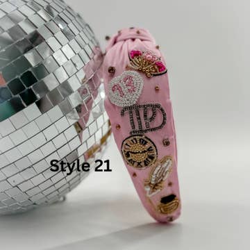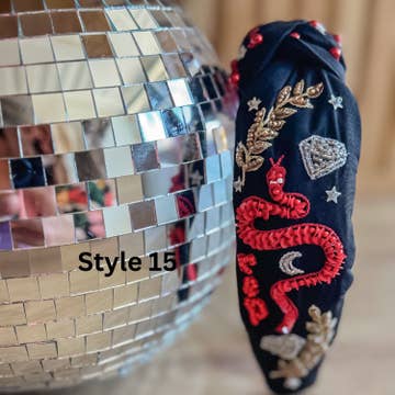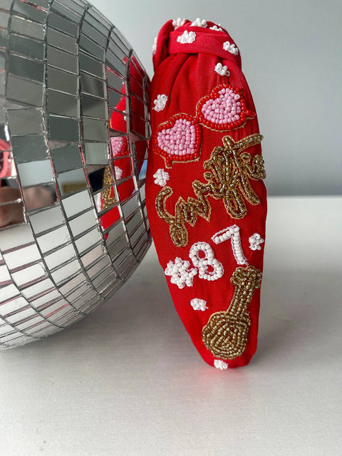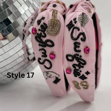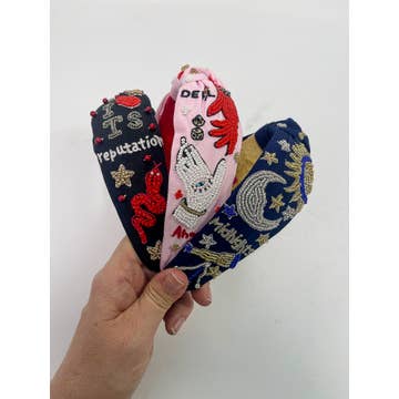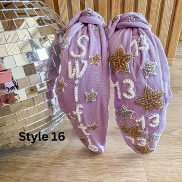 Our beaded Taylor headbands are perfect for concert festivities. Multiple colors are available. WIDTH: 6.5" HEIGHT: 2.5" Multiple Designs Available