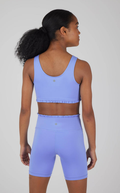 Girls Lux Bra and Short with Ruffle - 2 PCS Set - This is top and bottom SET! - Ruffle detailed Bra and Short in matching print and color - 6" Bike short - Pre-packed - Best for low impact workout or any outdoor activities!