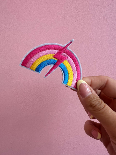Add a pop of color and sass to any outfit with the Happy Barb Rainbow Lightning Patch! This quirky patch features a vibrant rainbow lightning bolt design from the beloved brand, adding a touch of fun and humor to your look. Perfect for those who like to stand out and make a statement!
