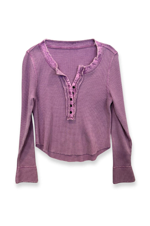 Stay stylish with our adorable Wesley Top! Featuring a vintage lived-in feel, cute button details, and playful fraying, this piece is perfect for any casual day out. Pair it with your favorite jeans, leggings, or even a skirt for an effortlessly chic look that keeps you cozy.